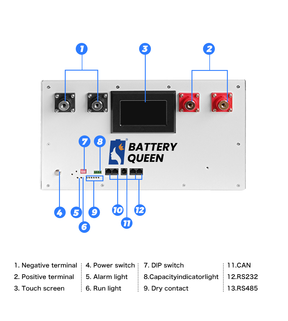 EU Stock 16S 48V/51.2V 280Ah LiFePO4 Battery Box Solar Energy System DIY Kit 440*750*251mm Communication CANBUS/RS485 Images |